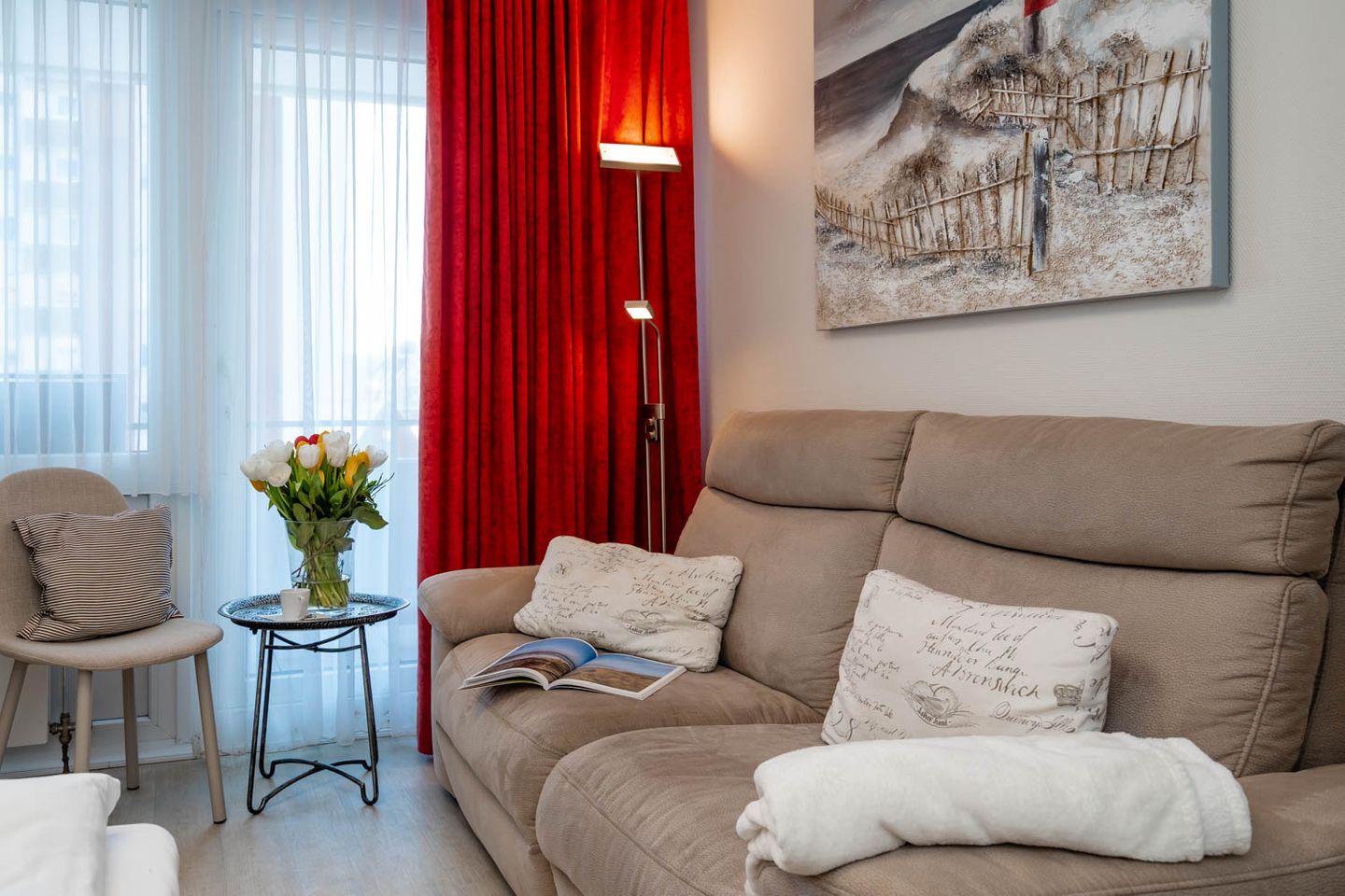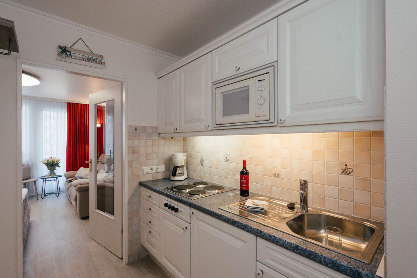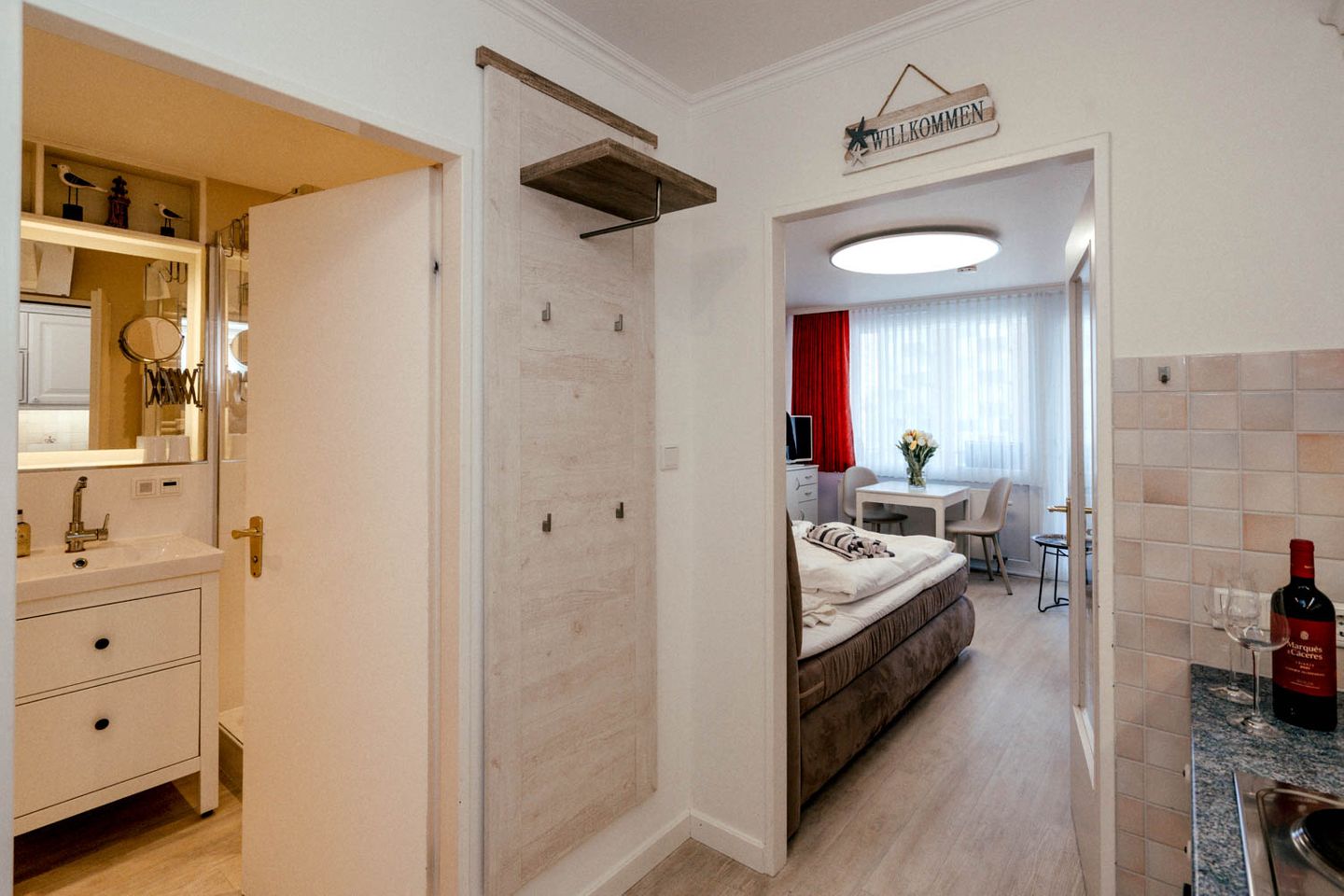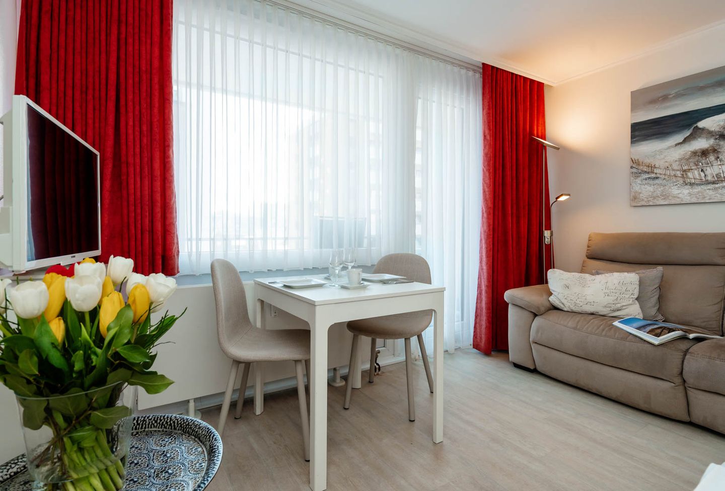Wie cool: "Arielle", unsere charmante kleine Meerjungfrau im großen Ferienwohnungs-Angebot, hat sich jetzt richtig schick gemacht. Nach kompletter Renovierung im Frühsommer 2018 hat sie jetzt ihren ganz eigenen frischen und nordisch-klaren Stil mit der lichten Trendfarbe Greige, viel Weiß und roten Farbakzenten. Komplett wird der Insellook mit attraktiven maritimen Leinwänden Sylter Motive. Unverändert blieben natürlich die ursprünglichen Stärken dieser 25 Quadratmeter großen Ferienwohnung. Sie liegt im zweiten Stock eines Westerländer Appartementhauses und hat schon immer zahlreiche Fans wegen ihrer "perfekten" Lage: Innenstadt, Fußgängerzonen und der Strandübergang bei der Sylter Welle liegen quasi direkt vor der Haustür. "Arielle" ist einfach perfekt für zwei, nicht nur für Meerjungfrauen.