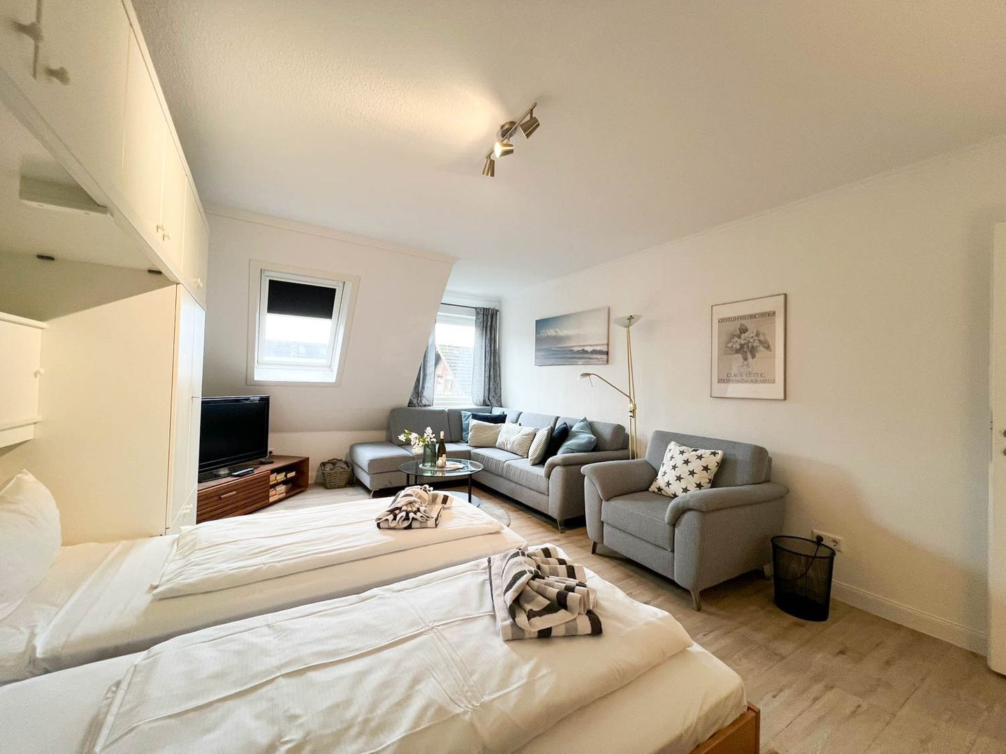 Moin, moin, willkommen im "Blaue Huis" im Westerländer Waldwinkel. Dieses Stück Sylt kennen Sie noch gar nicht? Kein Wunder: Dieses Insel-Refugium mit zwei Zimmern für vier liegt herrlich versteckt direkt an einem kleinen Waldstückchen im Norden der Inselhauptstadt. "Weit" genug weg von der Innenstadt, um sehr ruhig zu sein, und doch so zentral, dass Westerland und Wenningstedt zu Fuß zu erreichen sind, ganz in der Nähe hält auch der Bus. Die Nordseeklinik ist nahe und damit natürlich auch der Strand, den Insulaner besonders mögen, weil er nicht ganz so lebhaft, aber trotzdem nicht einsam ist. Auch einen sympathischen uns super sortierten kleinen Supermarkt finden Sie direkt um die Ecke. Die Wohnung im Obergeschoss eines Zweifamilienhauses ist hell und mit Liebe zum Detail und klarer Linie eingerichtet.