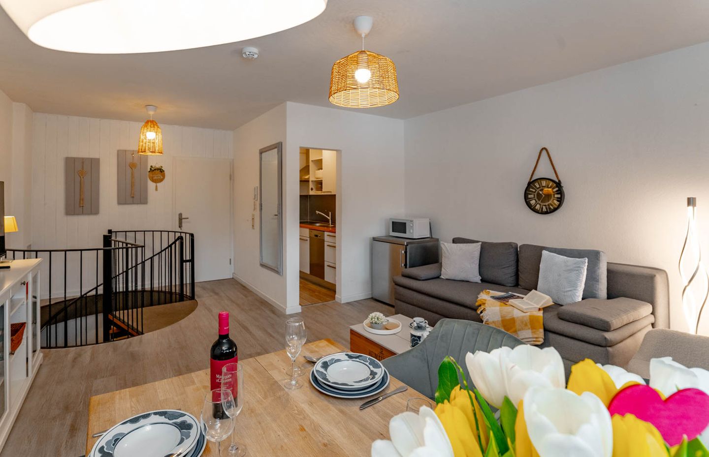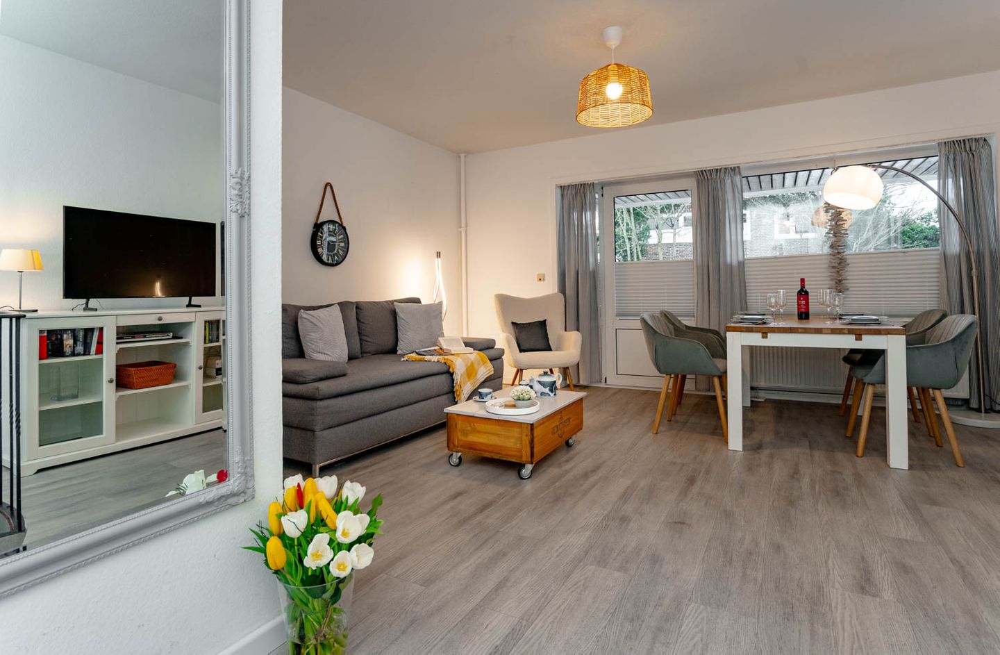 Sie suchen eine liebevoll eingerichtete 2-Zimmer-Ferienwohnung über zwei Ebenen, bei der es etwas mehr sein darf? Dann könnte das 50 Quadratmeter große Appartement "Hüs Wüf" genau das Richtige für Sie sein. Es liegt superzentral und ebenerdig in einem Appartementhaus nahe des Bahnhofs, also mittendrin und doch ruhig. Und als Extra gibt es im Haus auch noch ein Schwimmbad und eine Sauna (gegen Gebühr).