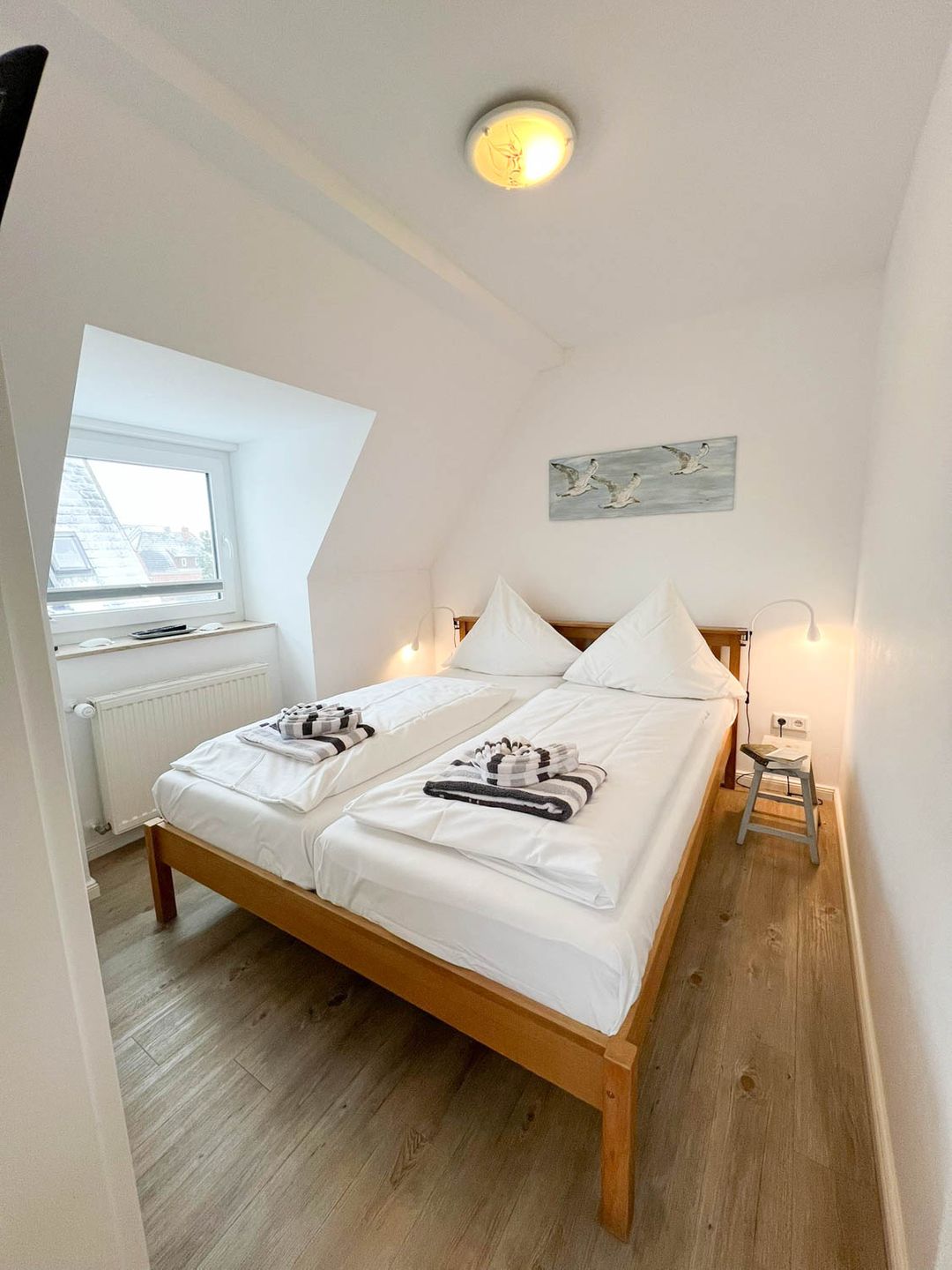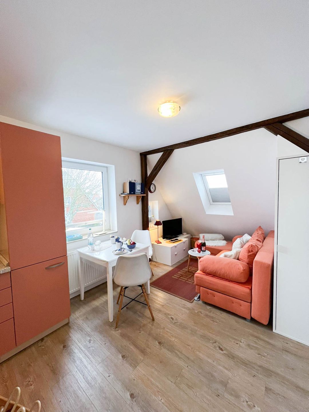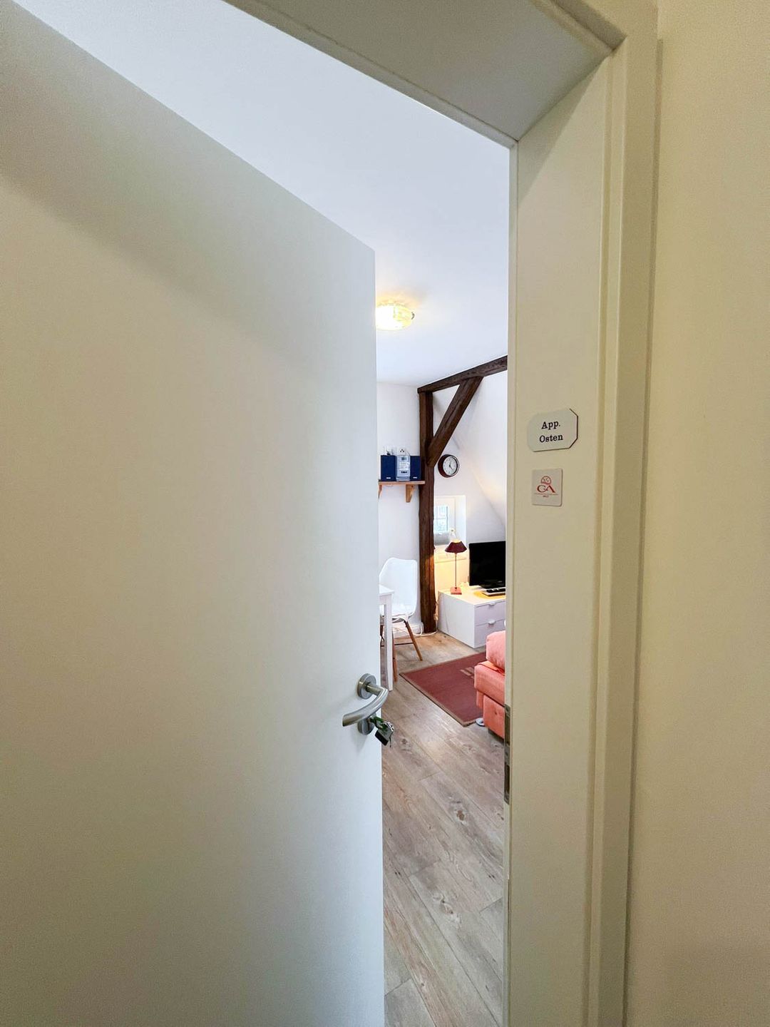 Perfekt für Ferien mit Meeresanschluss: Die 2-Zimmer-Ferienwohnung "Osten" liegt für Strandlieberhaber ideal, im einfamilienhausgeprägten Süden von Westerland, nah bei der Innenstadt und doch ein wenig abseits, sodass es hier schön ruhig bleibt. Das Appartement befindet sich im ersten Stock eines Familienhauses mit drei Parteien, sie ist mit circa 30 Quadratmetern relativ klein, hat aber Ihren eigenen individuellen Charme, zum Teil sogar freiliegende Dachbalken.