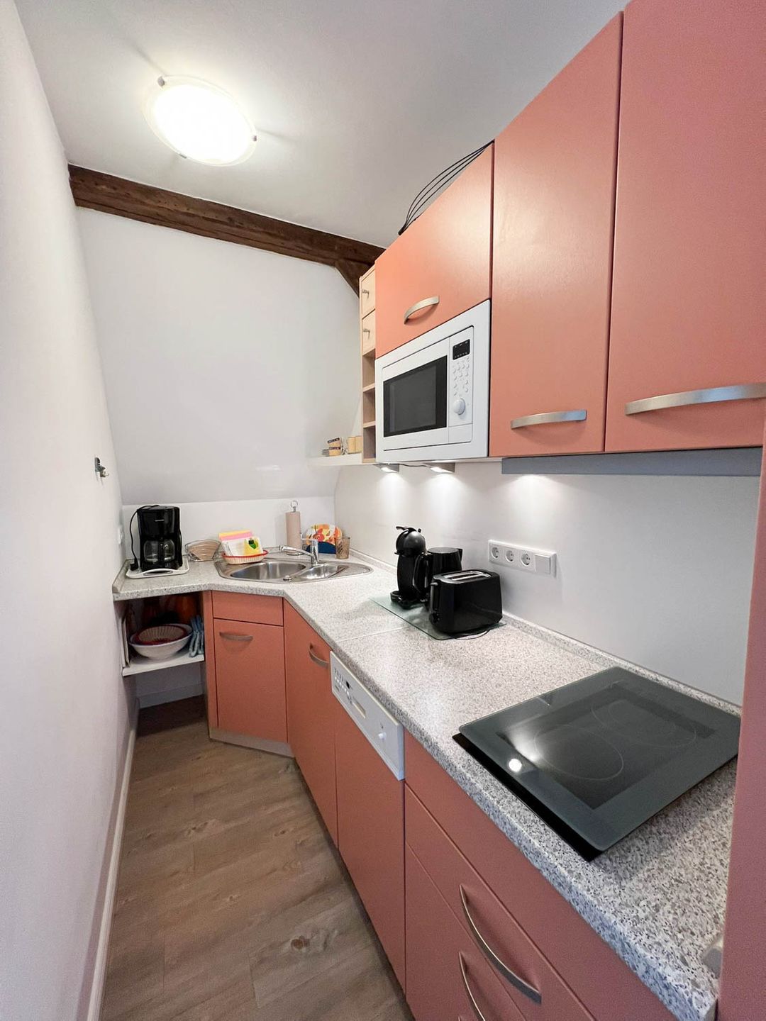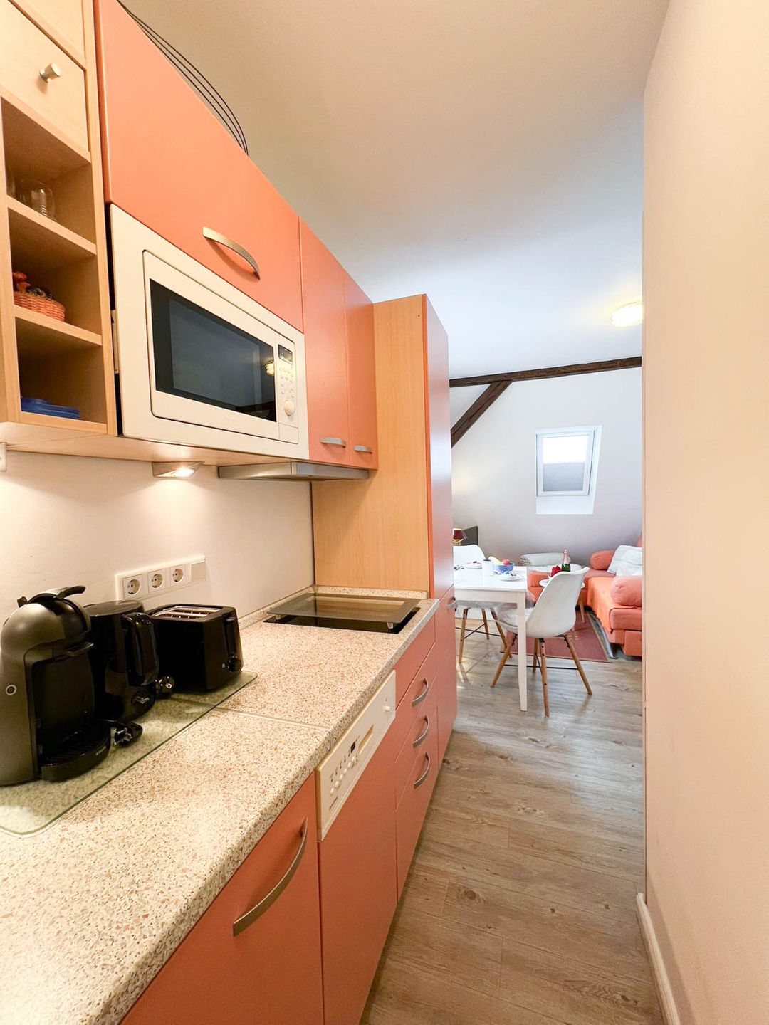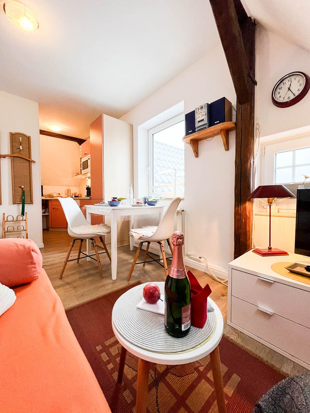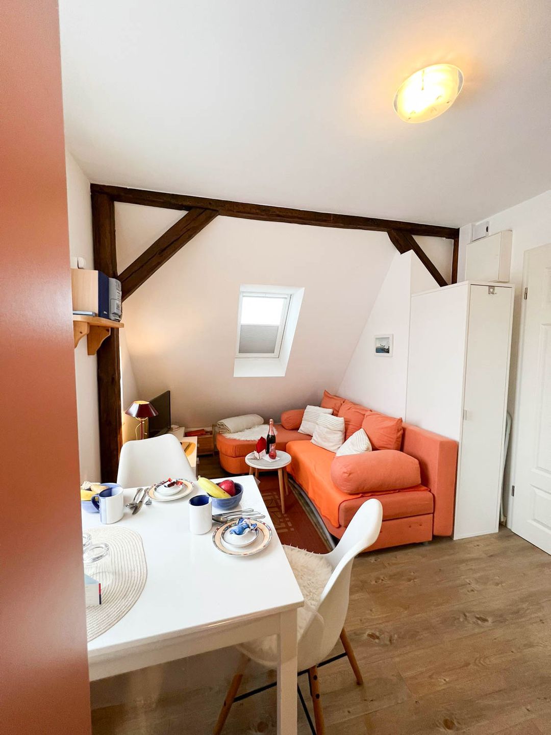Perfekt für Ferien mit Meeresanschluss: Die 2-Zimmer-Ferienwohnung "Osten" liegt für Strandlieberhaber ideal, im einfamilienhausgeprägten Süden von Westerland, nah bei der Innenstadt und doch ein wenig abseits, sodass es hier schön ruhig bleibt. Das Appartement befindet sich im ersten Stock eines Familienhauses mit drei Parteien, sie ist mit circa 30 Quadratmetern relativ klein, hat aber Ihren eigenen individuellen Charme, zum Teil sogar freiliegende Dachbalken.